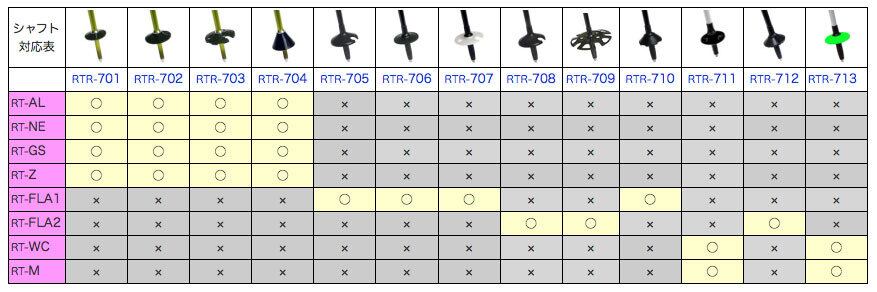 お選びいただきましたシャフトによって、装着できるグリップ 、リングが異なりますのでご注意下さい。